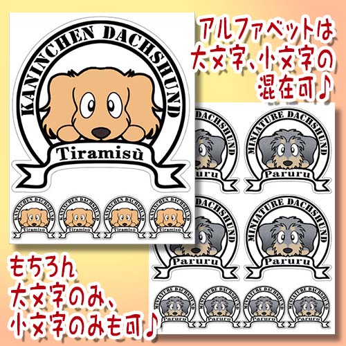 また、“MINIATURE DACHSHUND” の部分も、追加料金無しでお好きな文字に変更することが可能です。ご希望の際は注文時にお伝え下さい。