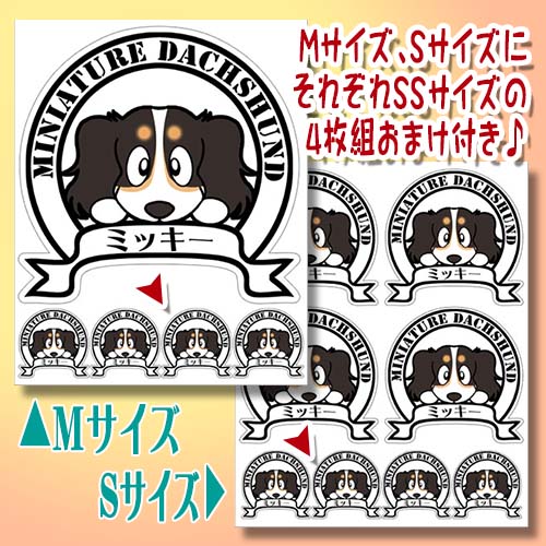 ダックスステッカーの正面向きバージョンは、生活シーンに合わせてMサイズとSサイズをご用意♪