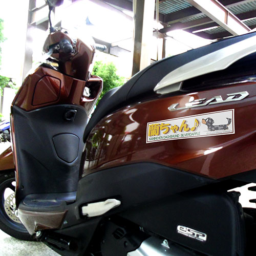 横向きステッカーをお車やバイク、自転車、身の回りの小物などに貼った画像を紹介しています。