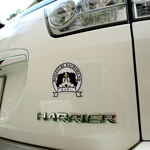 ダックスステッカーは、お車などに貼れる耐水性・耐候性に優れた“世界に一つだけの愛犬名入れステッカーです!