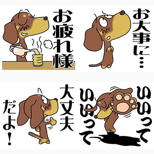 可愛くてゆるくてほっこり系なミニチュアダックスフンド・アポロさんによる、「おはよう」「おやすみ」「お疲れ様」など基本的な定番挨拶おまとめスタンプです♪