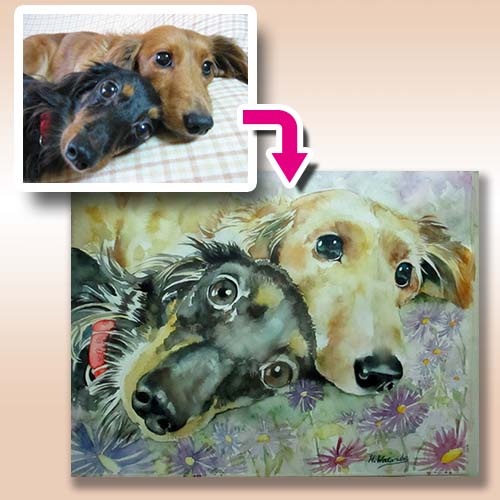愛犬のお写真を元に水彩画を制作いたします。
